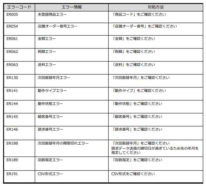 【りそな口座振替】請求情報CSVインポートエラーコード表 決済サービスFAQ